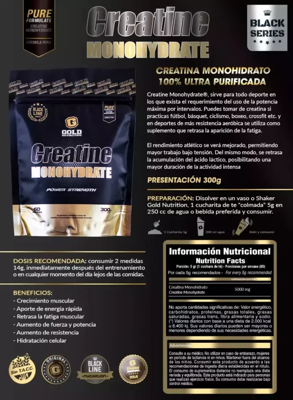 Creatine Monohydrate de GOLD NUTRITION, sirve para cualquier deporte interválico en los que exista el requerimiento del uso de la potencia máxima o submáxima con intervalos de menor intensidad.