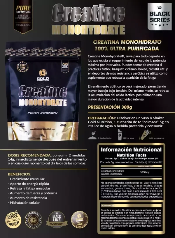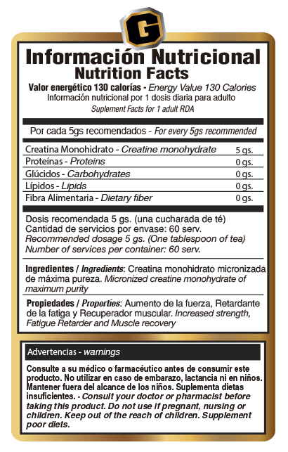 Creatine Monohydrate de GOLD NUTRITION, sirve para cualquier deporte interválico en los que exista el requerimiento del uso de la potencia máxima o submáxima con intervalos de menor intensidad.