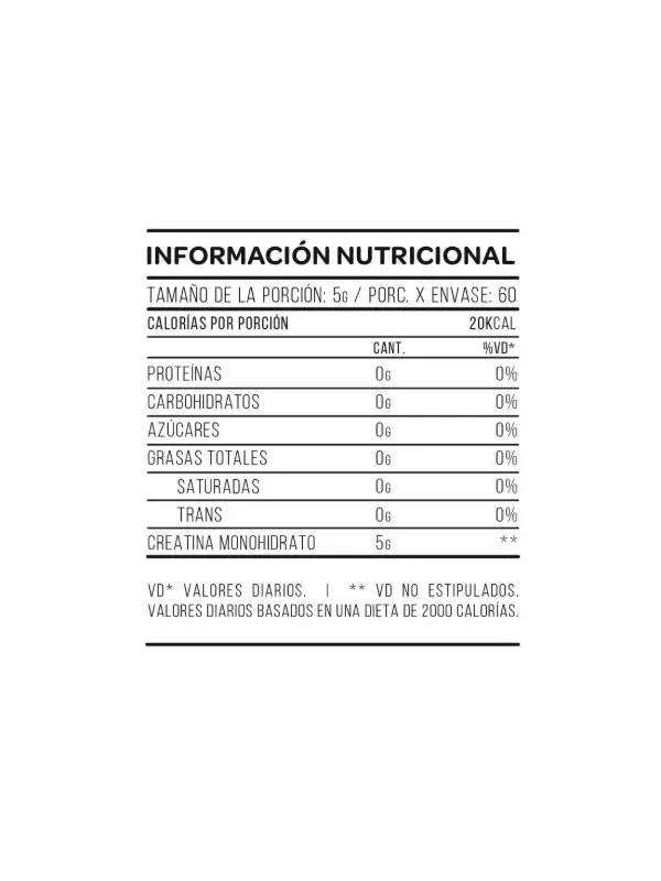 Contiene 5 gr. de creatina pura y tan sólo 20 calorías por porción.